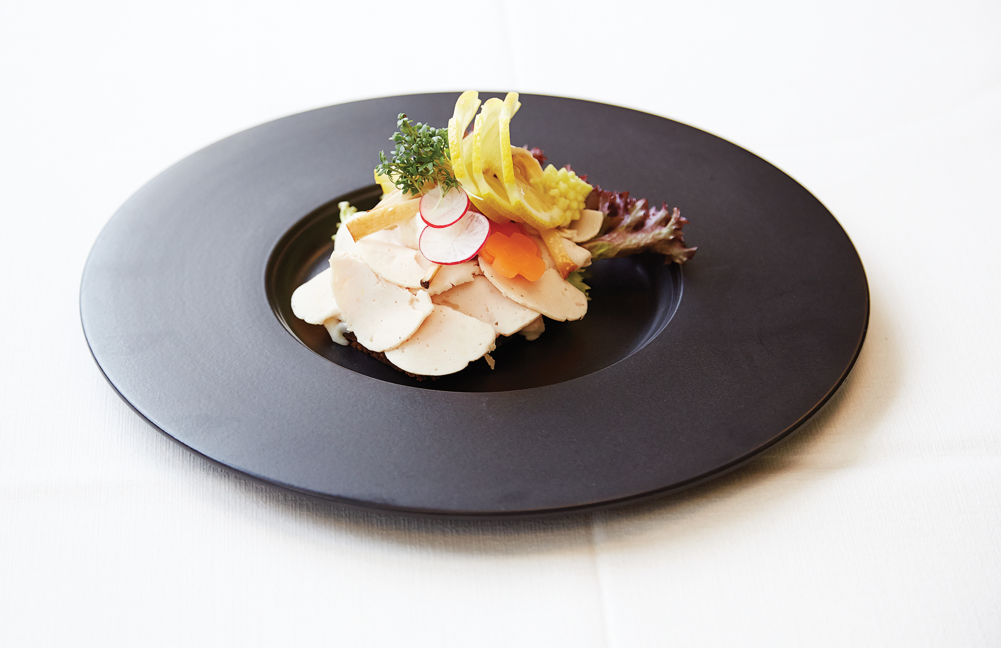 Smørrebrød med kyllingepålæg, rygeost, radiser m.m.