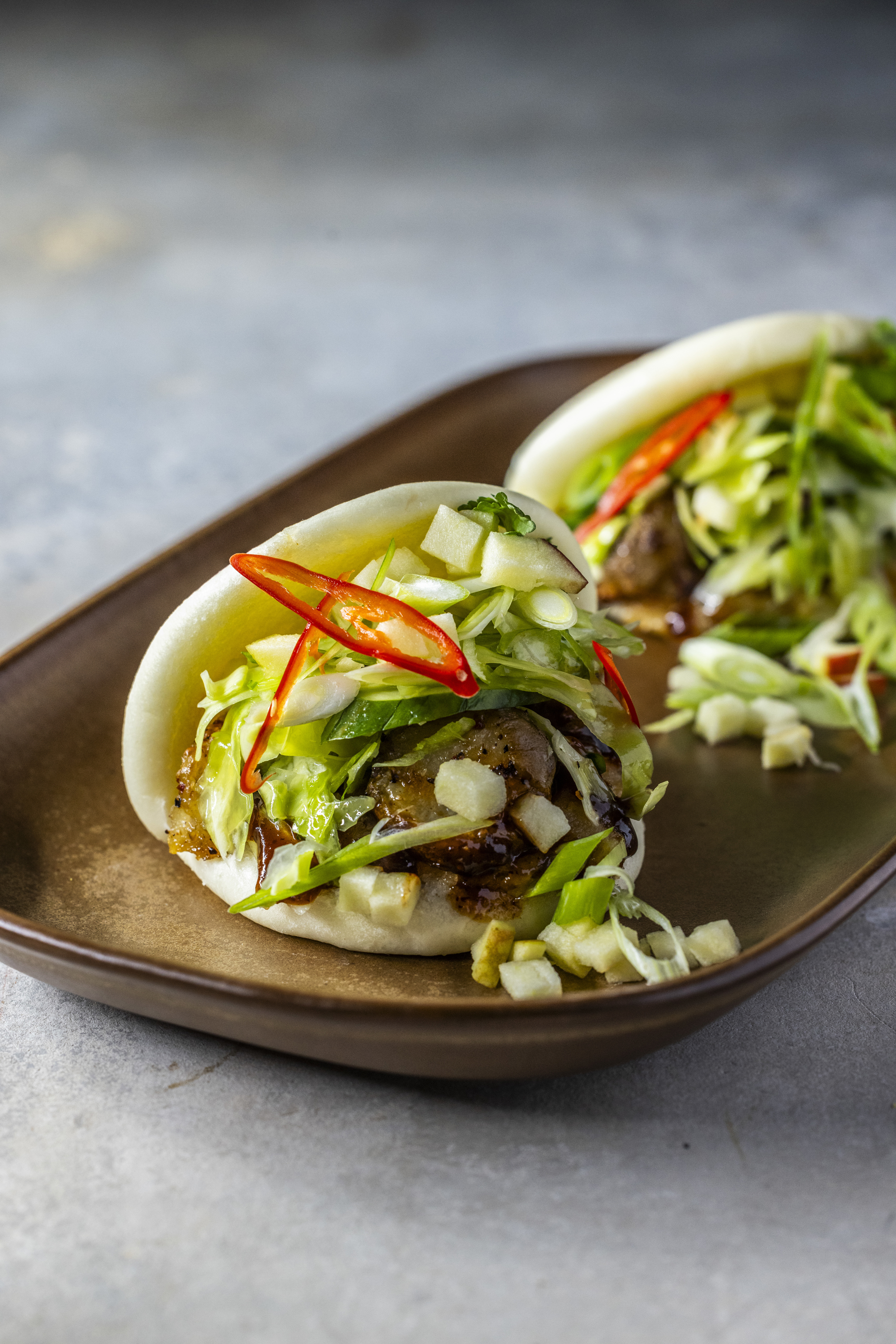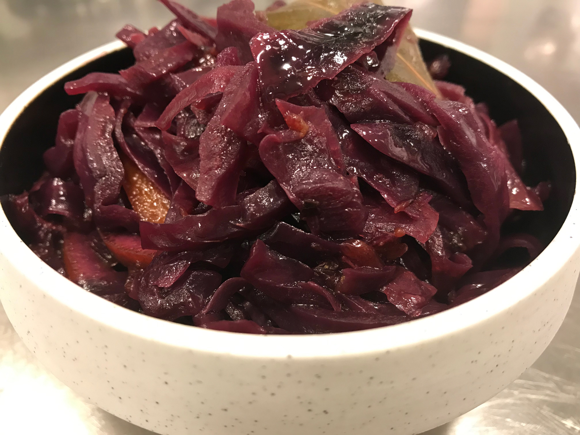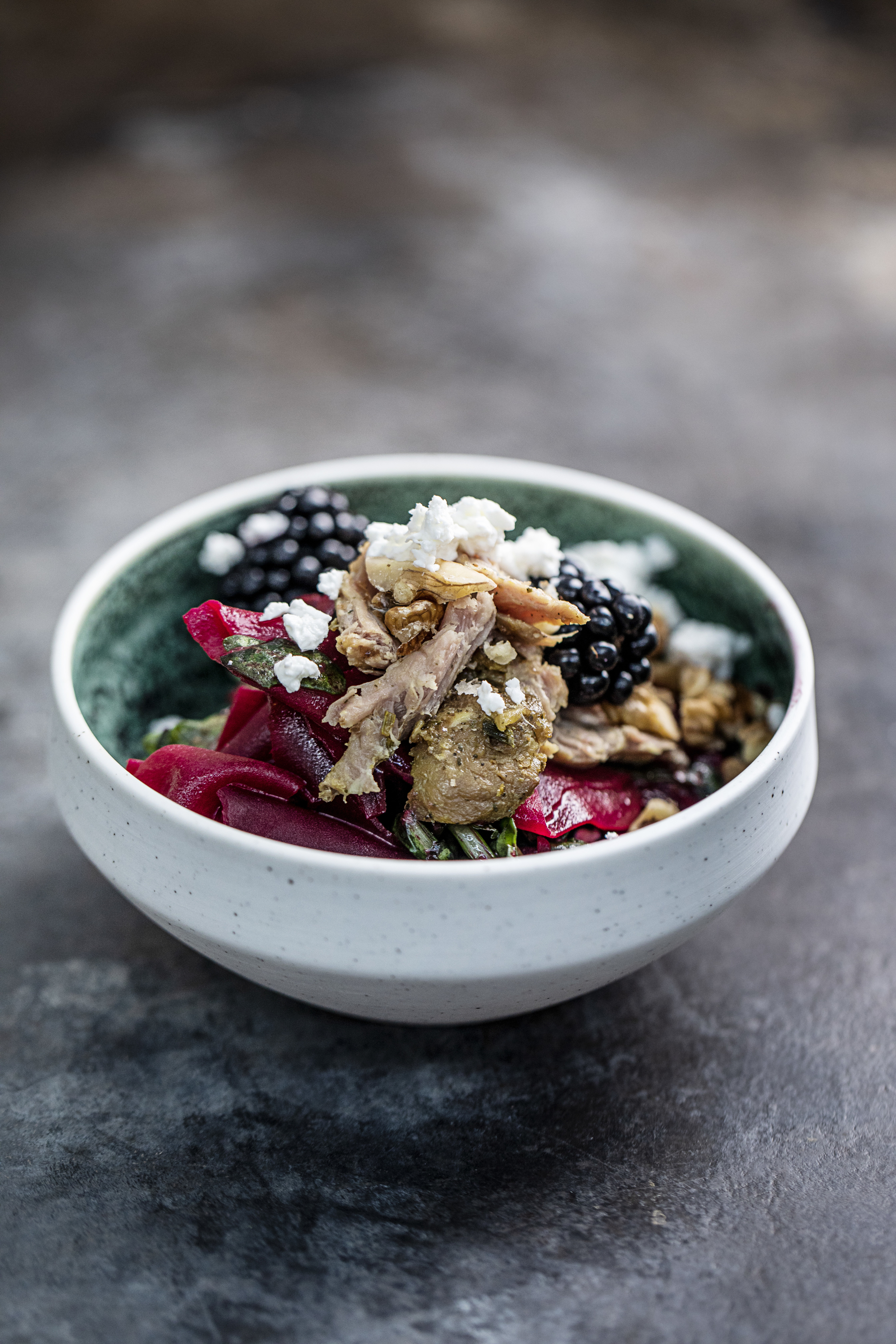 Stegt glaseret andebryst med græskar, chunky sauce og rødkål
