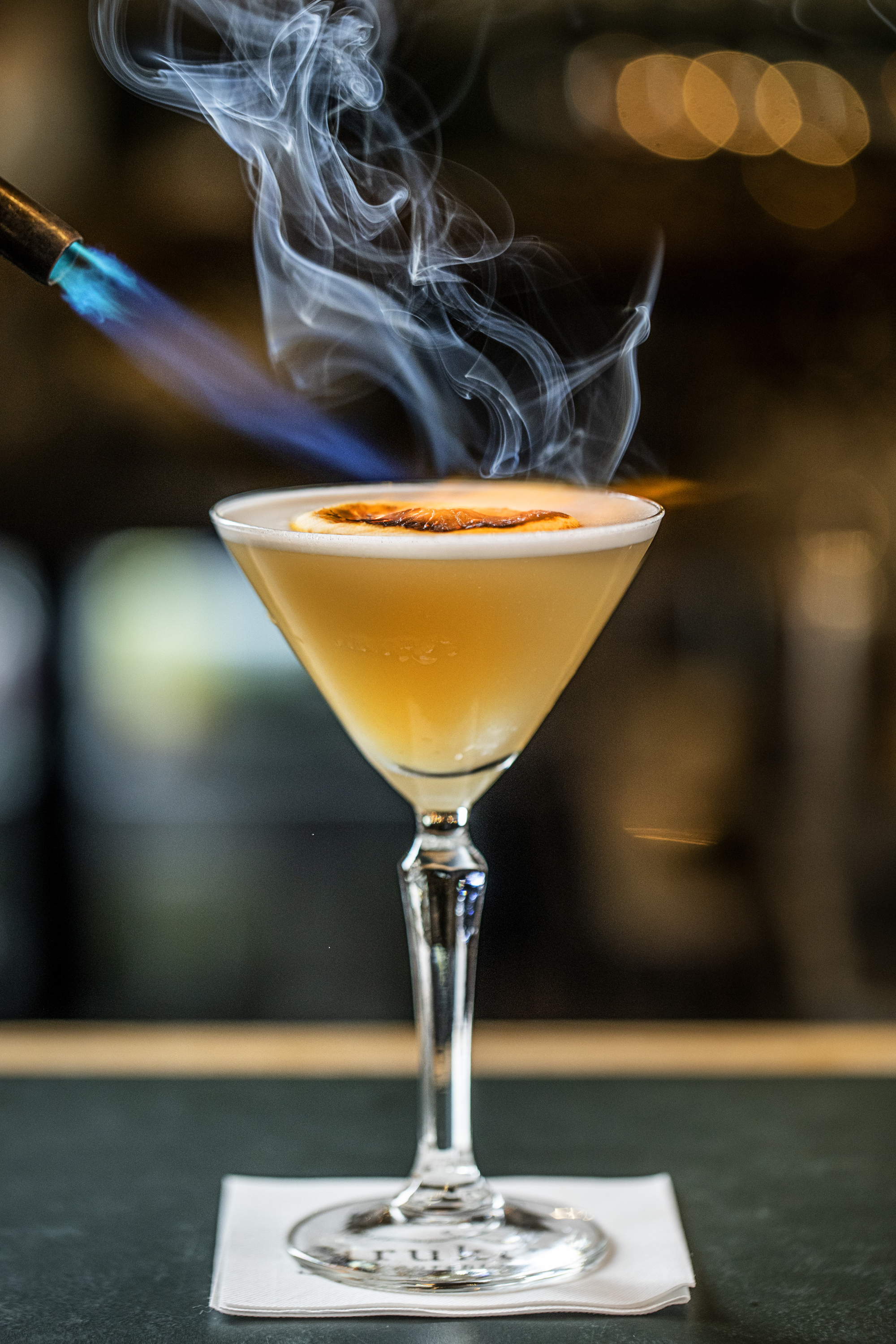 Figner i sherrysirup med spansk valdeon, reduktion af px sherry og appelsin samt pure af soltørrede abrikoser.