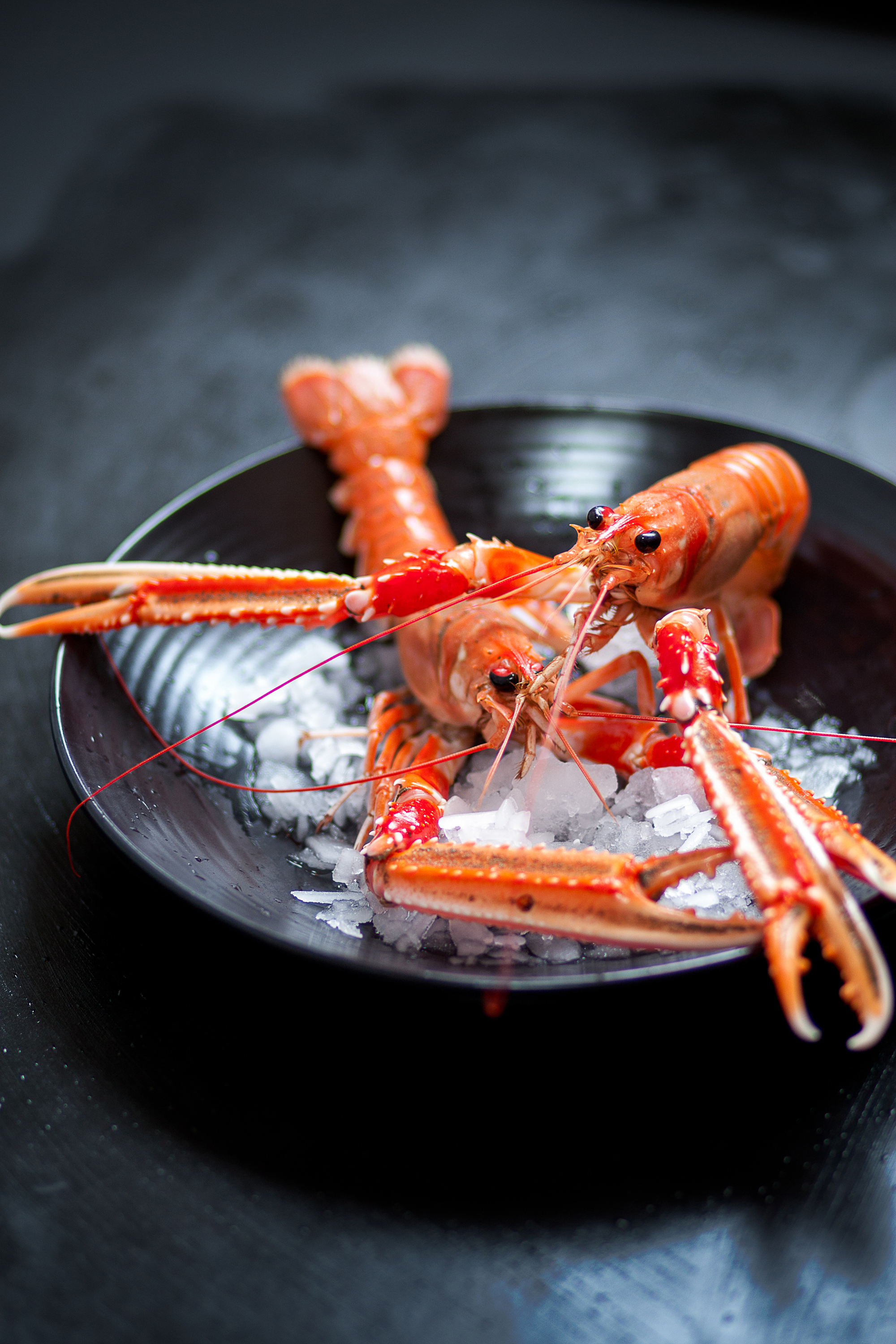 Orientalsk marineret skaldyrssalat med scampi & kammuslinger serveret med reduktion af teriyaki