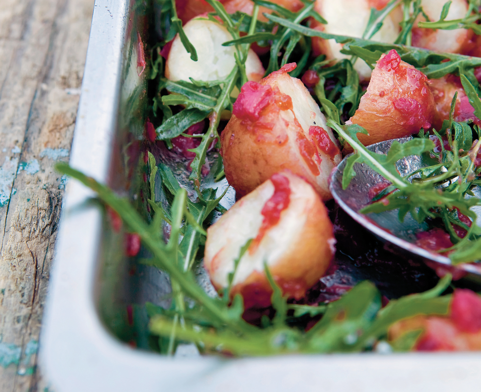 Kille Enna giver her sit bud på rabarberglaserede kartofler.