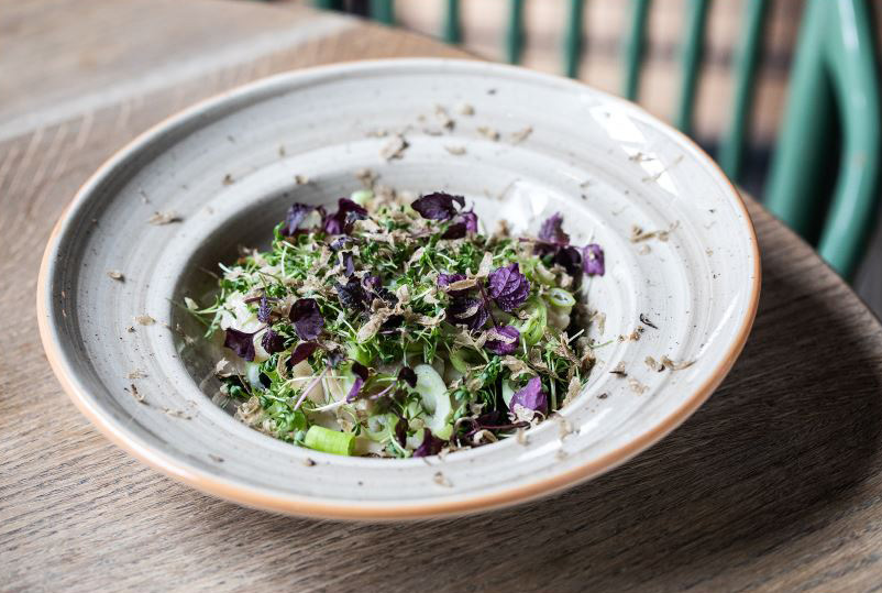 Æbleflæsk med jordskokker - få opskriften fra Hotel Saxkjøbing.