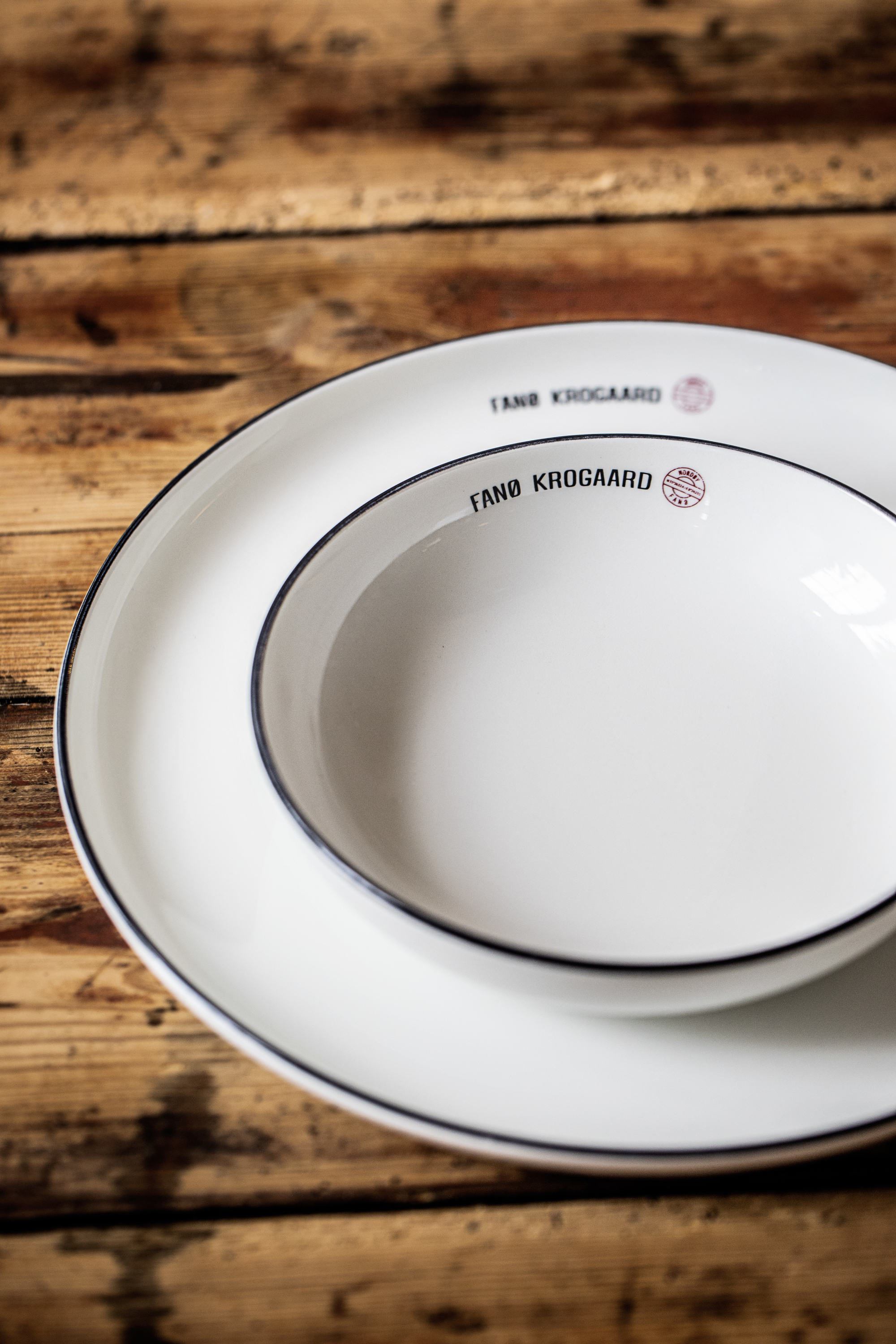 "Der er tradition for, at en kro har service med eget navn. Vi søgte en klassisk, hvid tallerkenserie med et moderne snit, som vi med vores eget, enkle design kan mike med spraglet porcelæn. Og vi ved, at Figgjo er kvalitet, der holder - og med kantskårsgaranti".