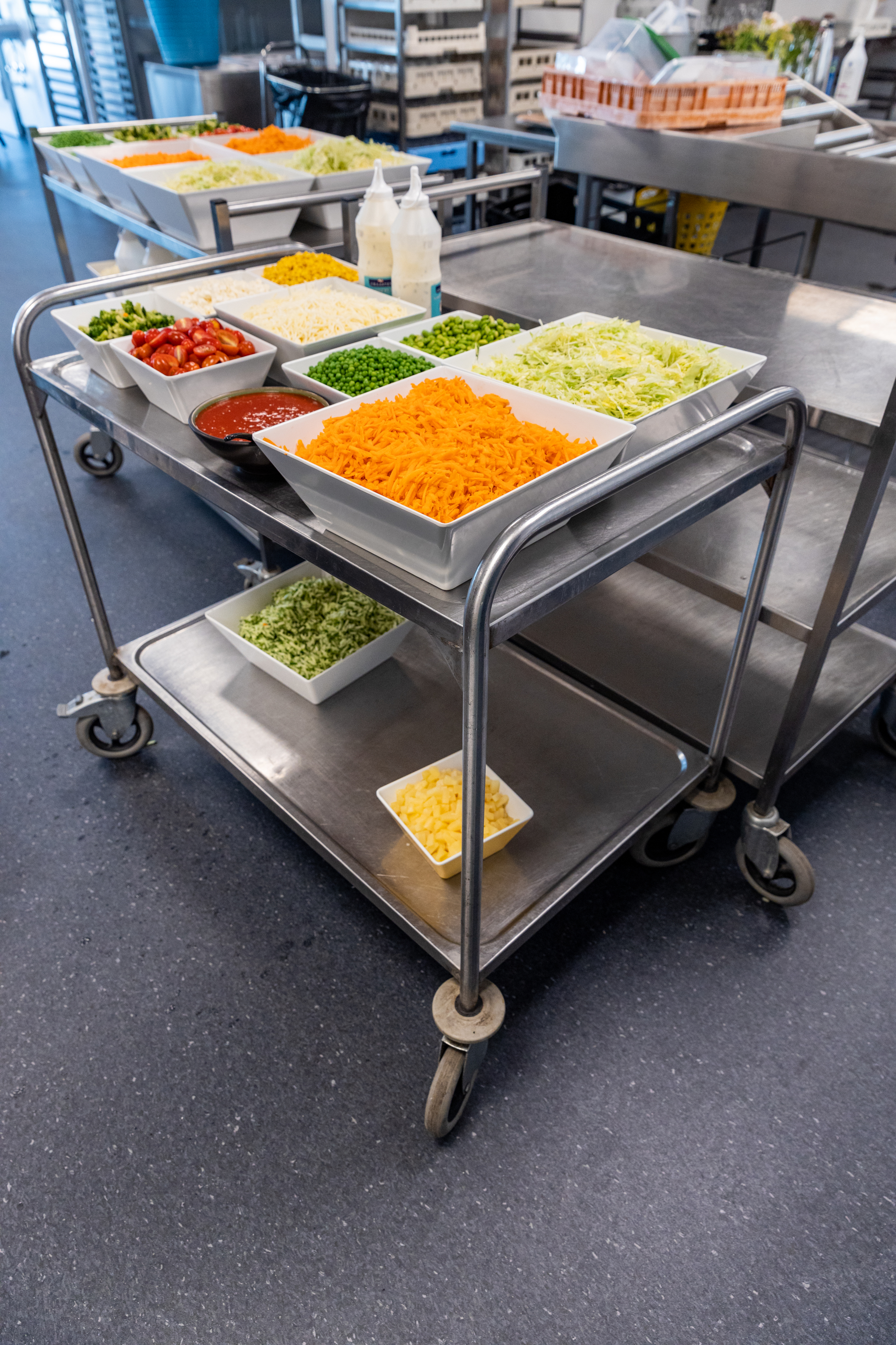 Det betyder, at der også er god plads til de 2 x 300 elever fra naboen, Felloskolen, som nu bruger Fritidscentret som skolekantine. Eleverne bestiller og betaler for god, sund frokost hjemmefra via en app.