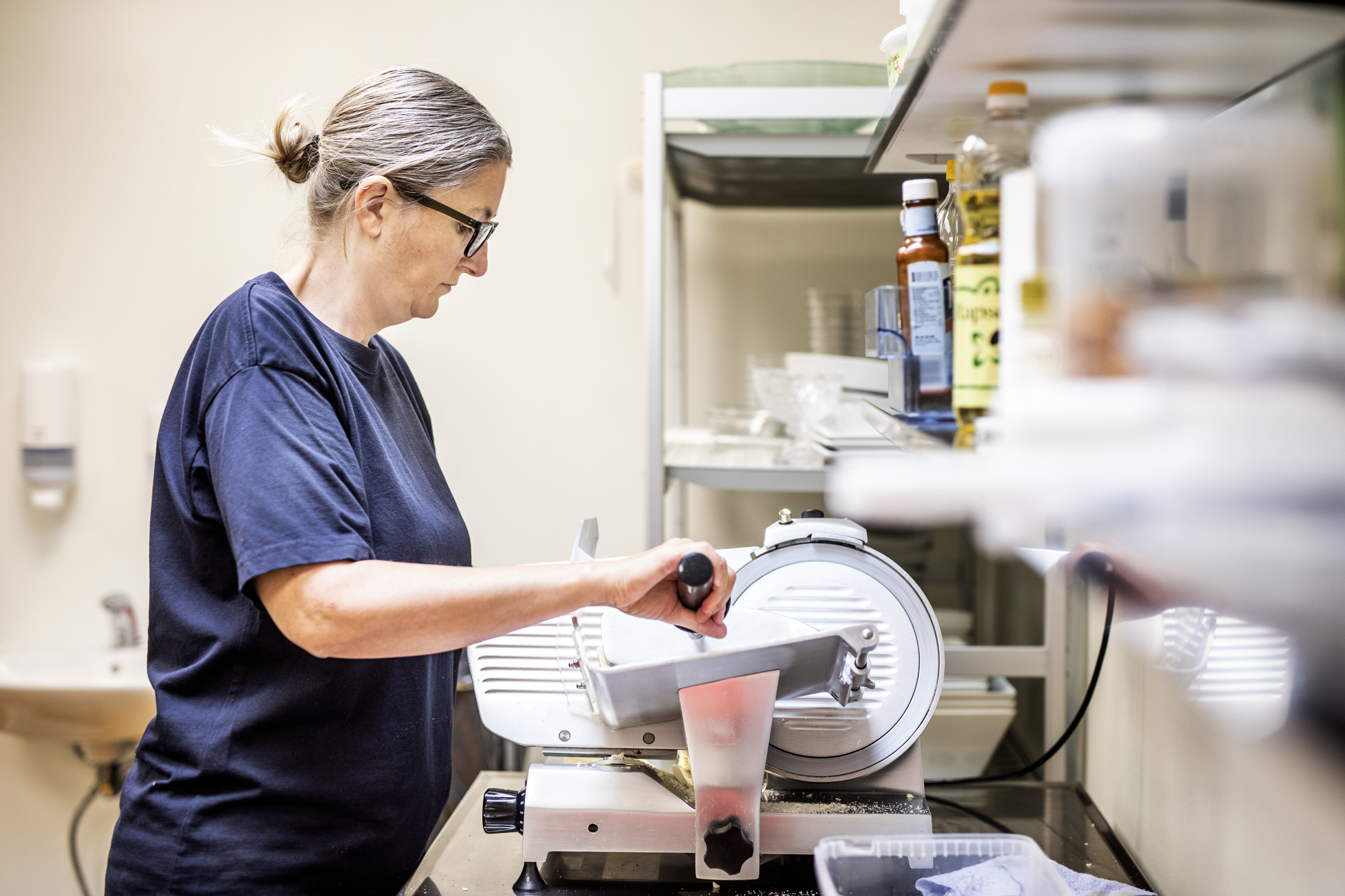 Det var ikke kantinefaciliteterne, der var fokus på i de år, hvor der blev knoklet for at få produktionen op at stå. Men da antallet af medarbejdere i perioden steg til næsten 100, blev det trods alt en udfordring for husholdningsovnen, komfuret, håndmixeren og det andet køkkengrej, som kantineleder Vibeke Jensen og hendes medhjælper, Tina Østergaard Jensen, havde til rådighed ved køkkenbordet i frokoststuen.