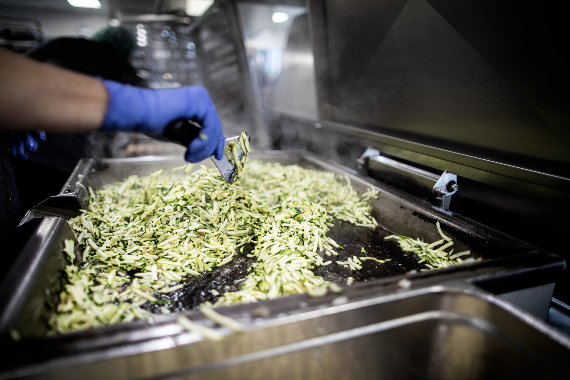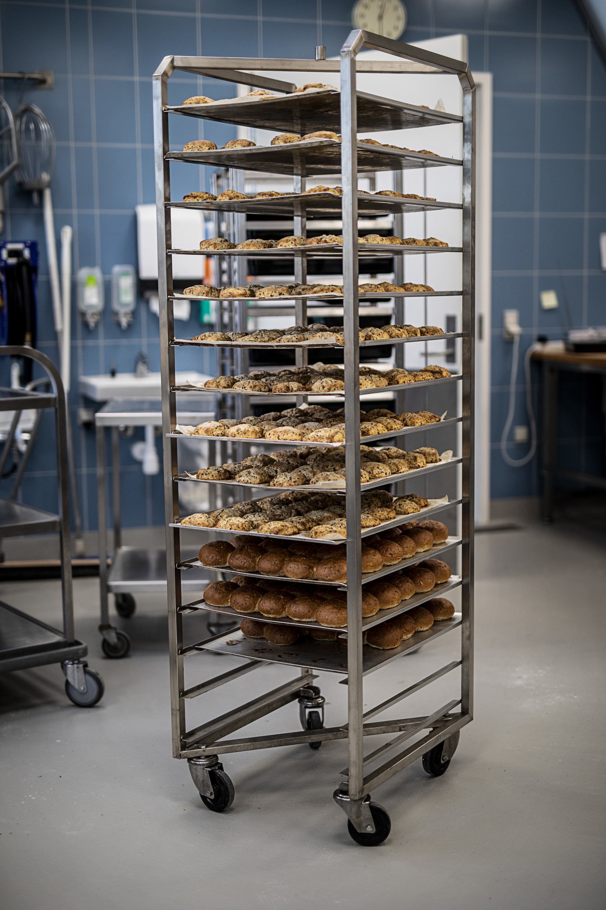 "Vi laver al mad fra bunden, og 75% er økologisk. Det bliver til 1.200 tons om året, og jeg drømmer om, at vi kommer endnu tættere på patienterne, fordi madomsorg er en meget vigtig del af behandlingen," siger cheføkonomaen, der flere gange dagligt sender lange korteger af madcontainere på en 1,7 kilometer lang køretur. Det sker i den