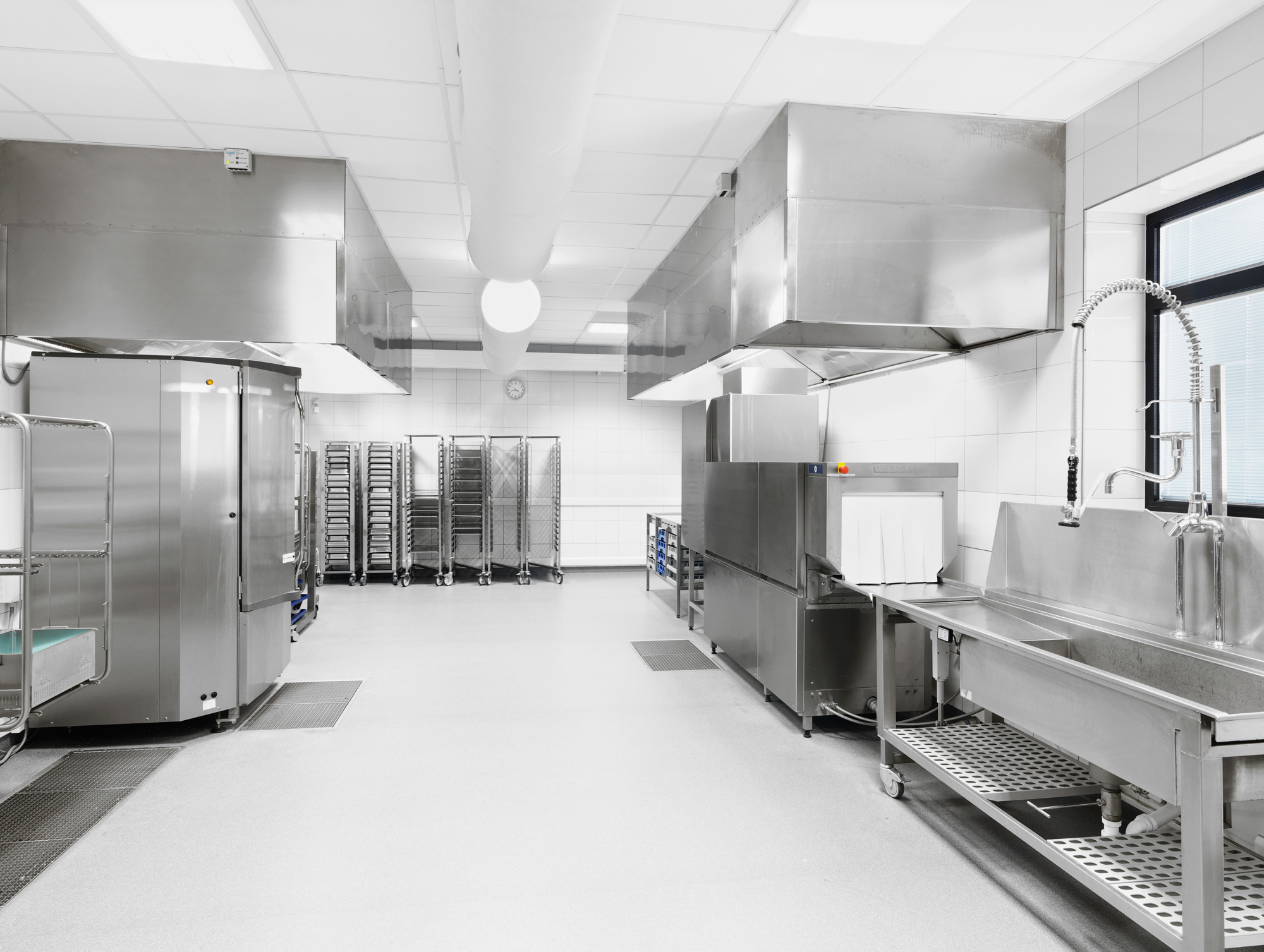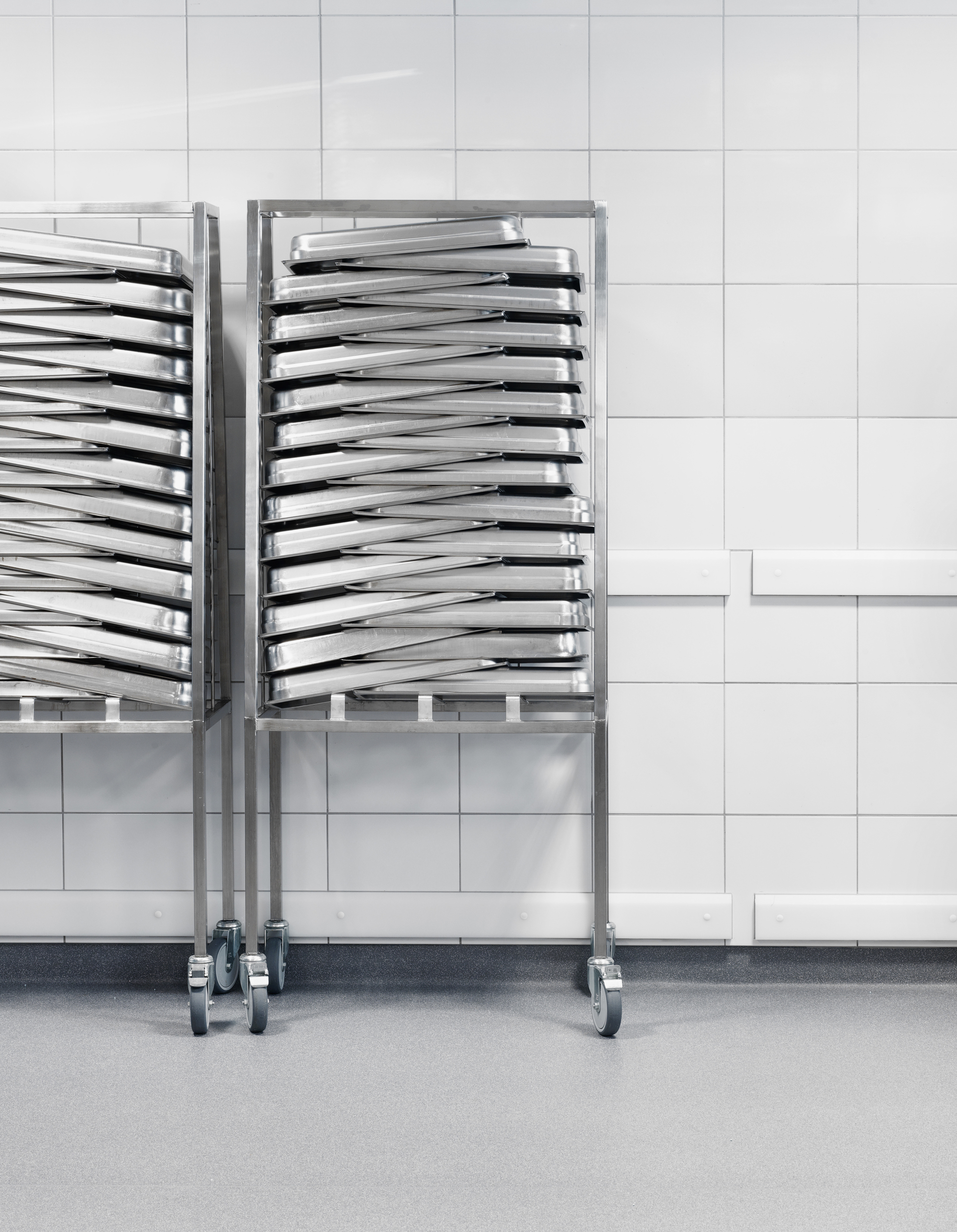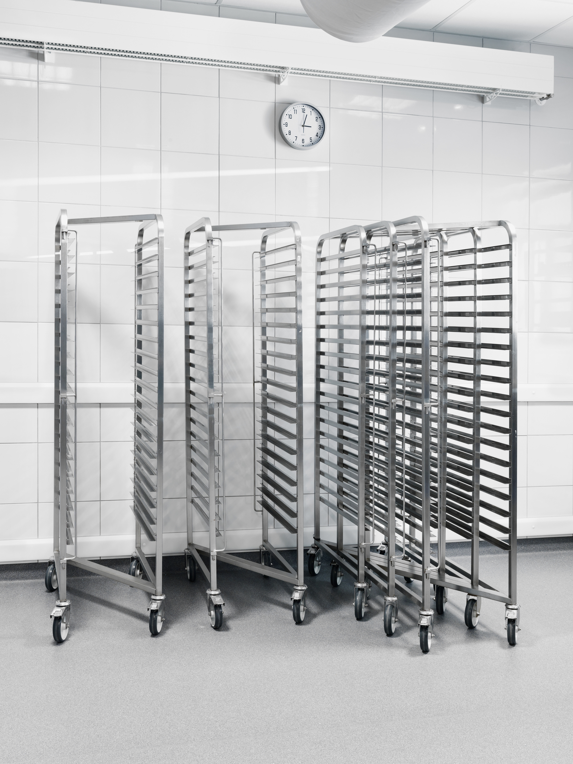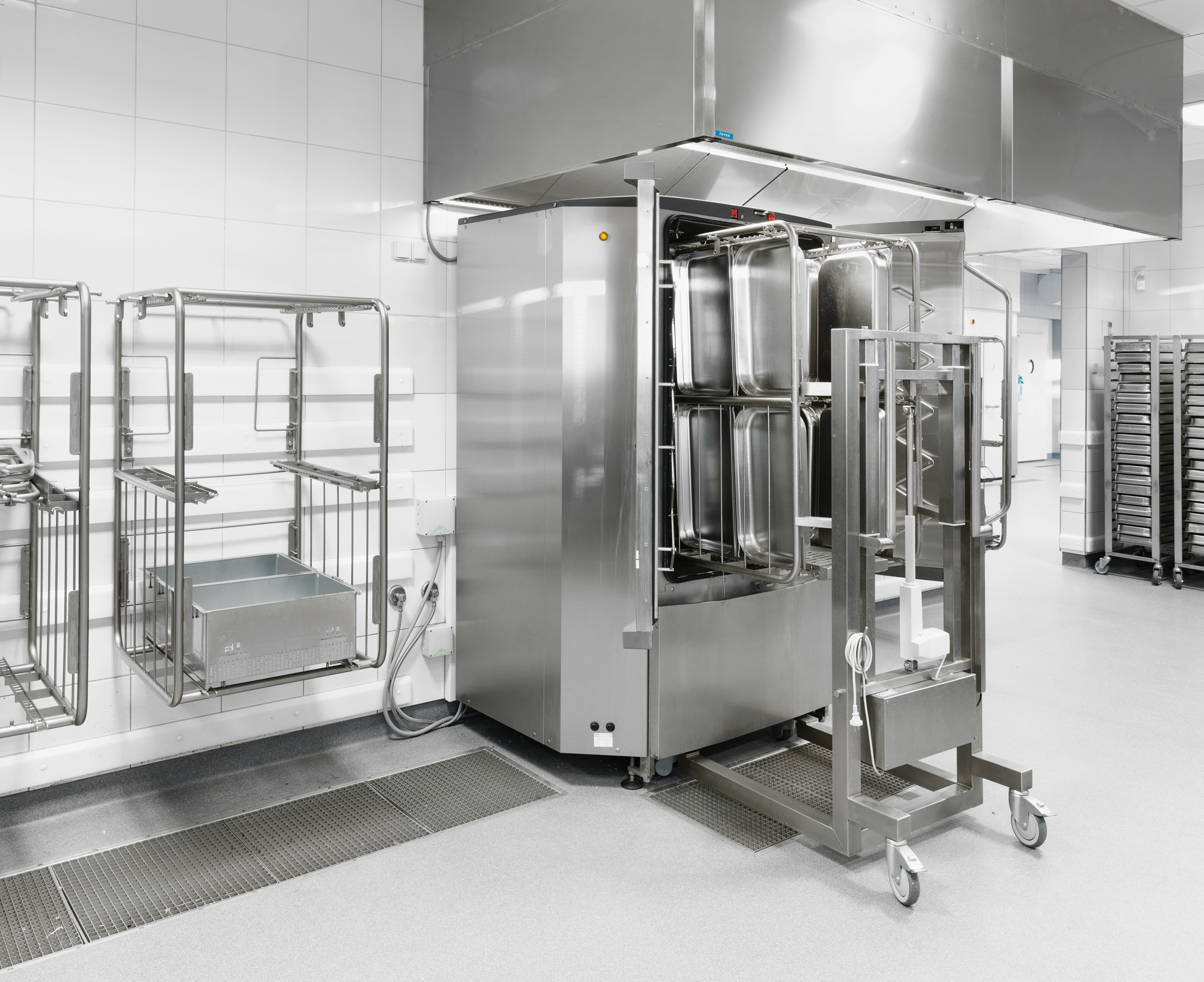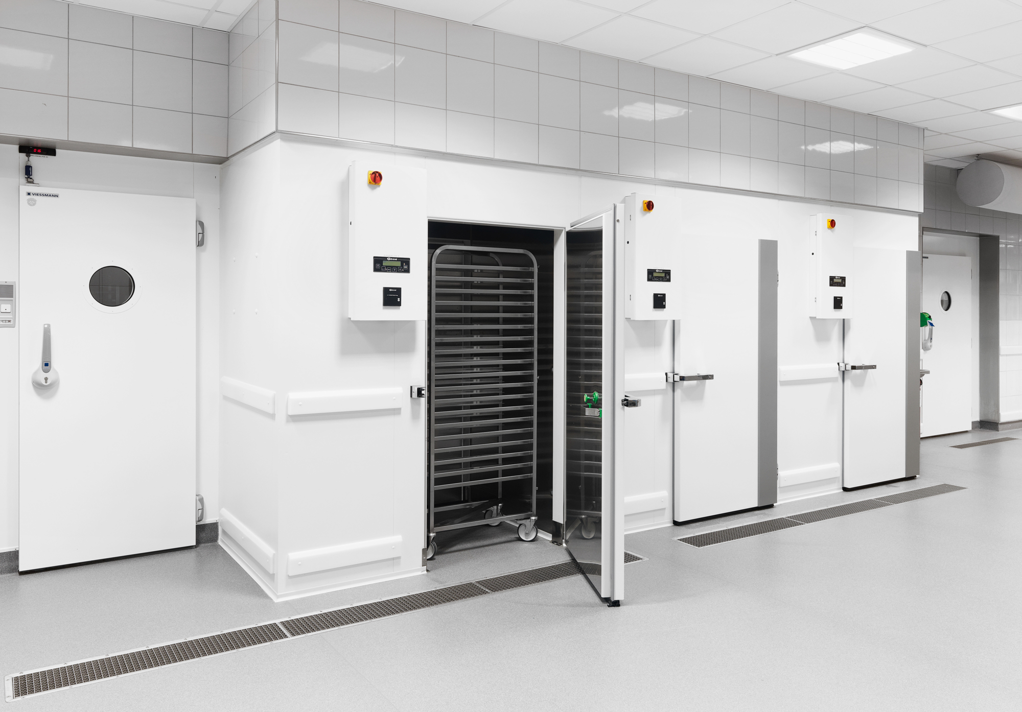 Stativer med tilberedt mad køres direkte i blæstkølere og derfra videre til kølerummene.