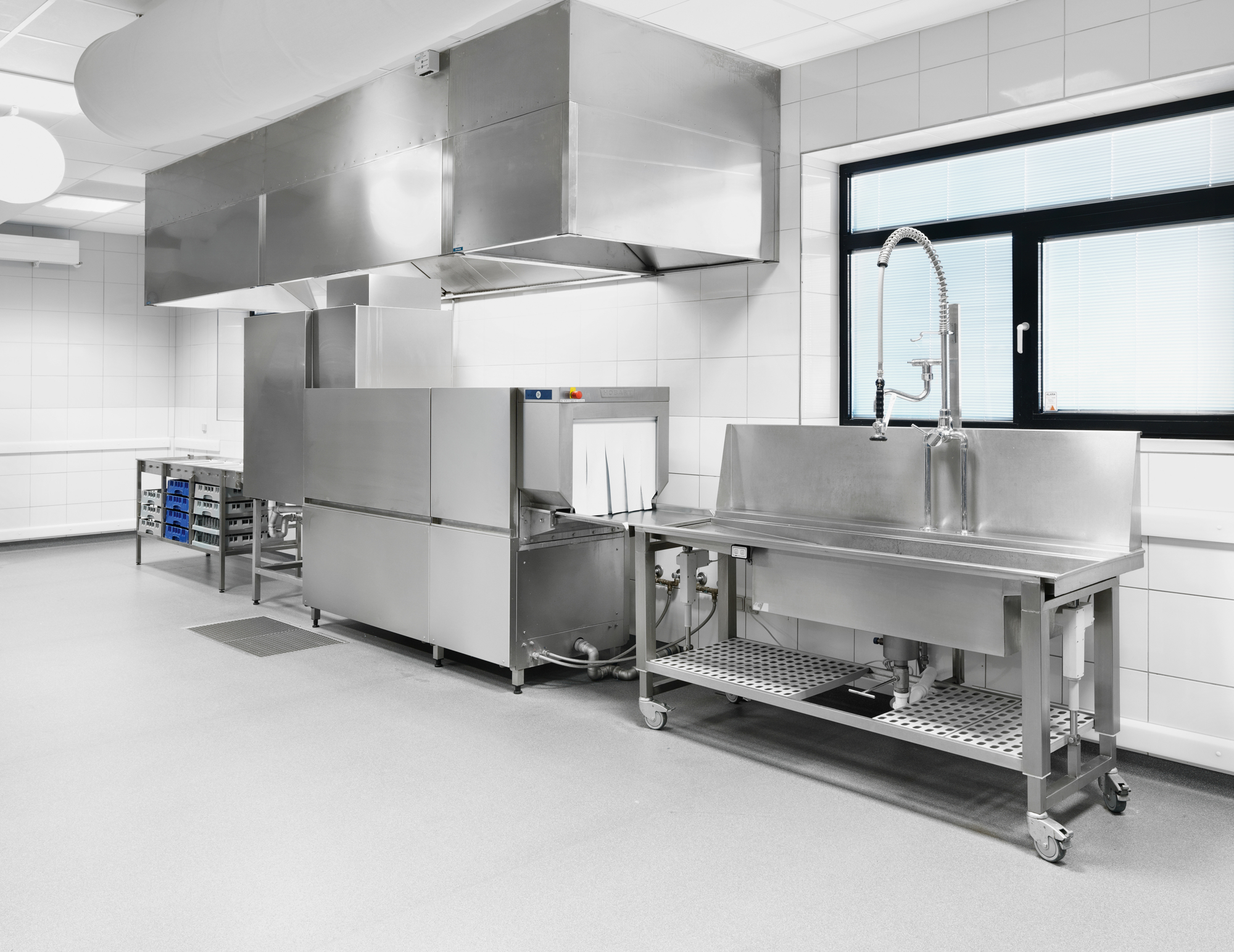 Opvask med tunnelmaskine og granulopvaskemaskine.