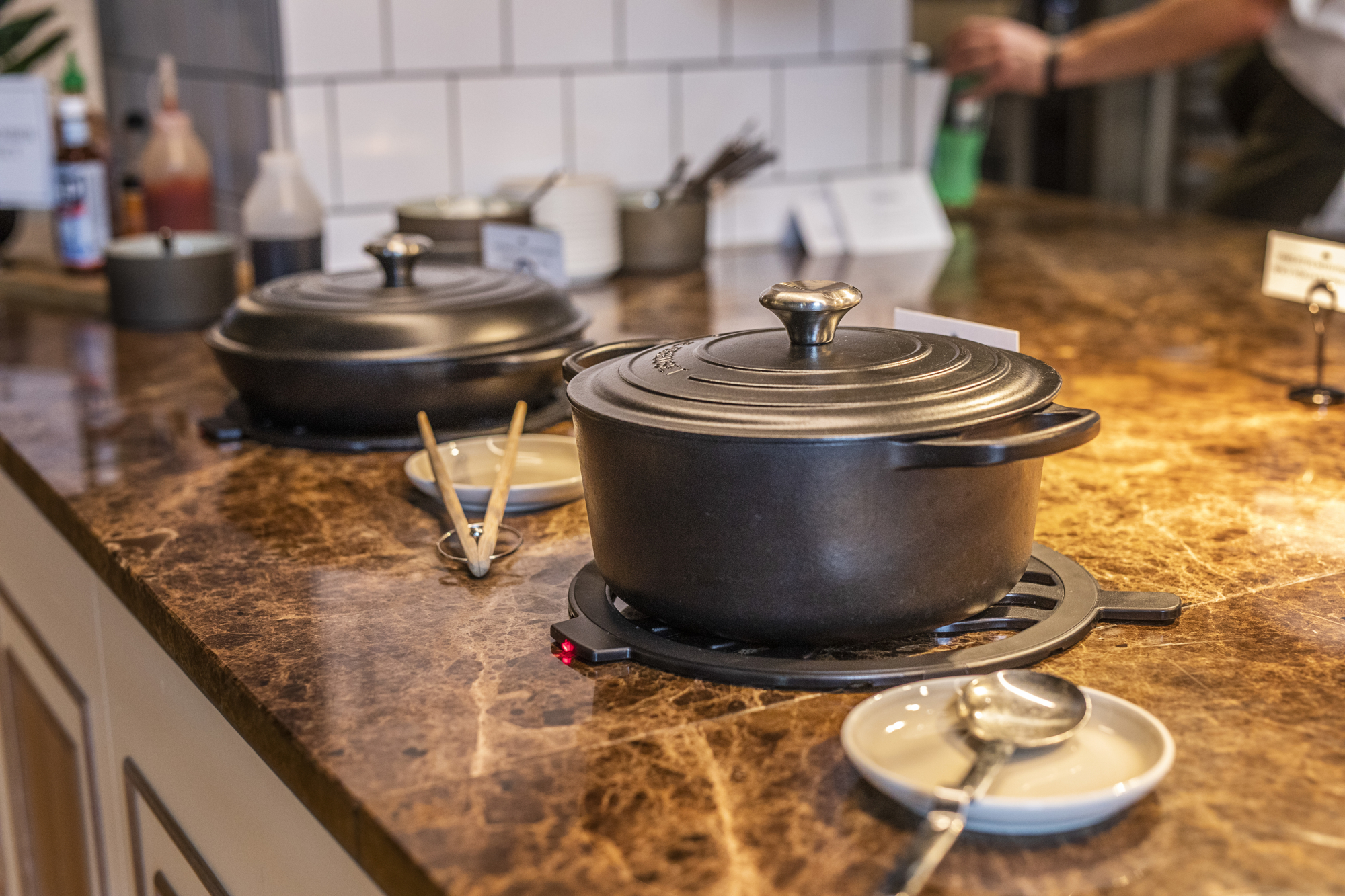 Planlægningen af bordets udtryk affødte flere ture til BENT BRANDTs showroom i Aarhus, hvor Lisette Jönsson, og salgschef hos BENT BRANDT, Peter Bjerrum, havde frit valg fra alle hylder til at finde de rigtige kombinationer af porcelæn, glas, bestik, skåle, fade og andet godt, som kunne bidrage til en rustik, afslappet femstjernet oplevelse – ikke kun i brasseriet, men også i hotellets store, morgenmadsrestaurant, vinbar og courtyard samt i møde- og konferencefaciliteter til 2.100 personer og på de 390 værelser.