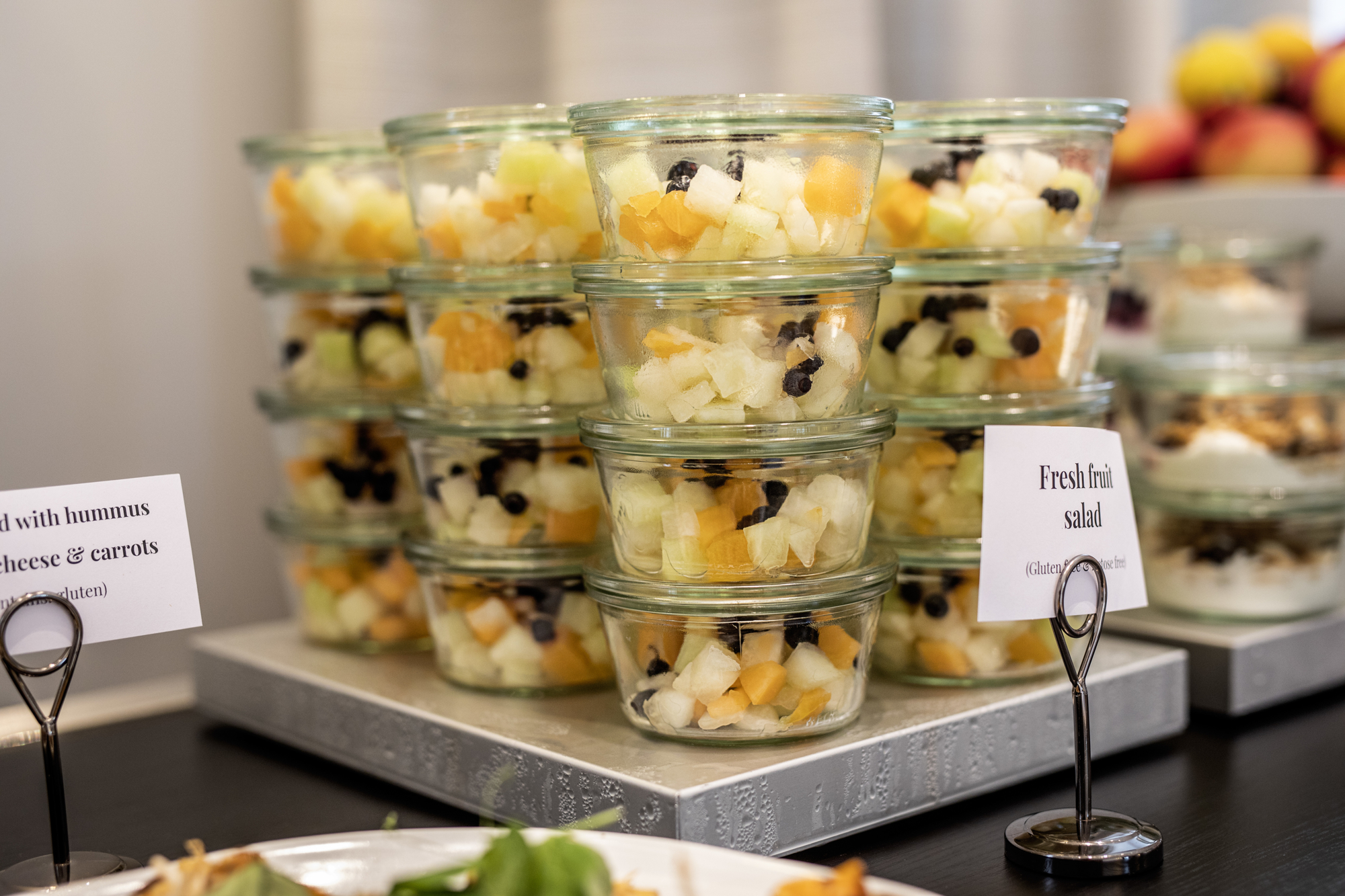 På buffeter og til den synlige opbevaring af bestik er træ et gennemgående element, og på værelserne samler specialfremstillede messingbakker de valgte Arcoroc glas.