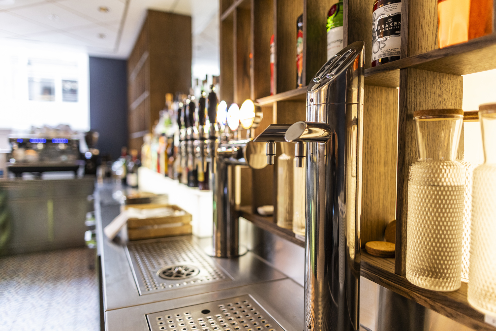 Med Philips ønskeliste i hånden blev der udarbejdet tegninger til en helt ny bar, der integrerer alle funktioner til kaffebrygning og mix af drinks, servering af spiritus og øl. Det sker i et U-formet diskarrangement, hvor tjeneren kan nå begge sider.